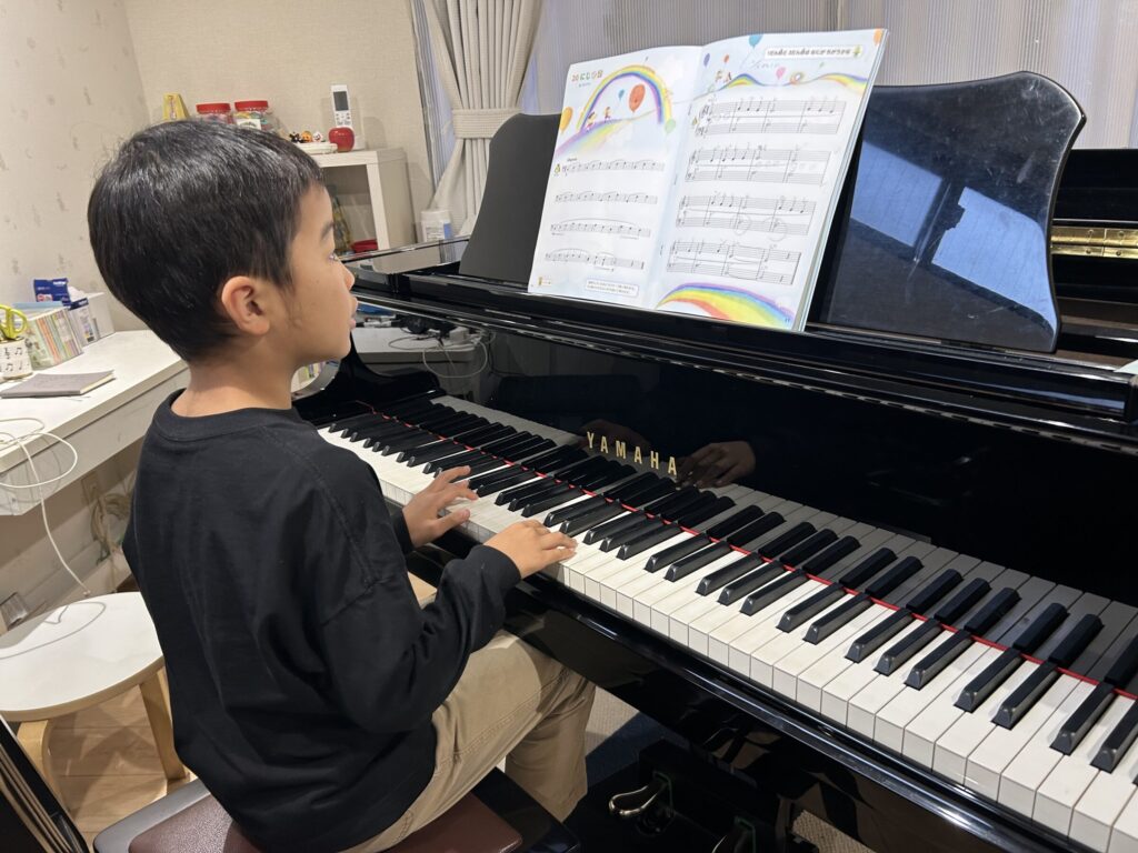 お母様がピアノの経験者で、お家でHくんのサポートをしてくださっています。Hくんはとにかくピアノが好きで、毎日たくさんピアノを弾いているとの事。「テキストじゃない曲ばかり練習するんです…」とお母様。大丈夫です。テキスト曲も好きな曲も、ピアノが好きであればどちらも上達にプラスになります。